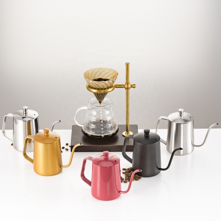 Tetera de goteo de acero inoxidable con colores personalizados, tetera de café con cuello de cisne, boca fina, cuello de cisne